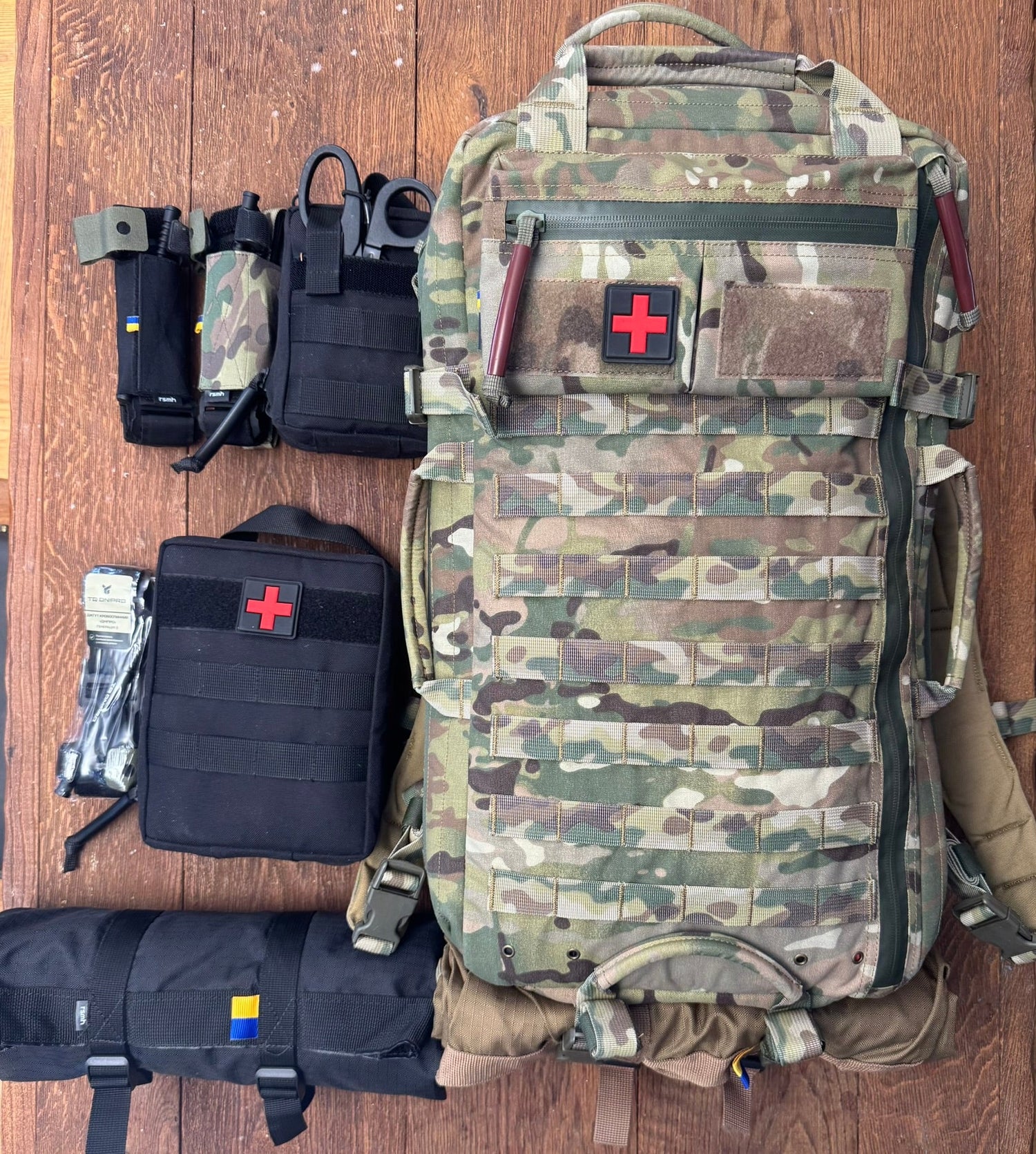 First aid equipment, bandages and bags